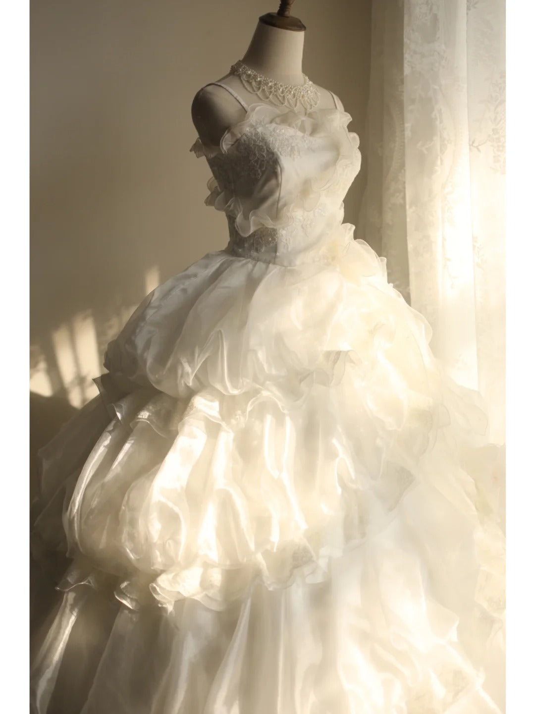 A-Linie Spitze Weißes Brautkleid Ärmellos Langes Prinzessin Abendkleid cg25935
