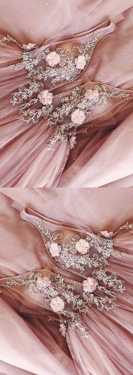 A-Linie V-Ausschnitt Rückenfrei Sweep Schleppe Rosa Ballkleid mit Perlenbesatz Blumen cg455