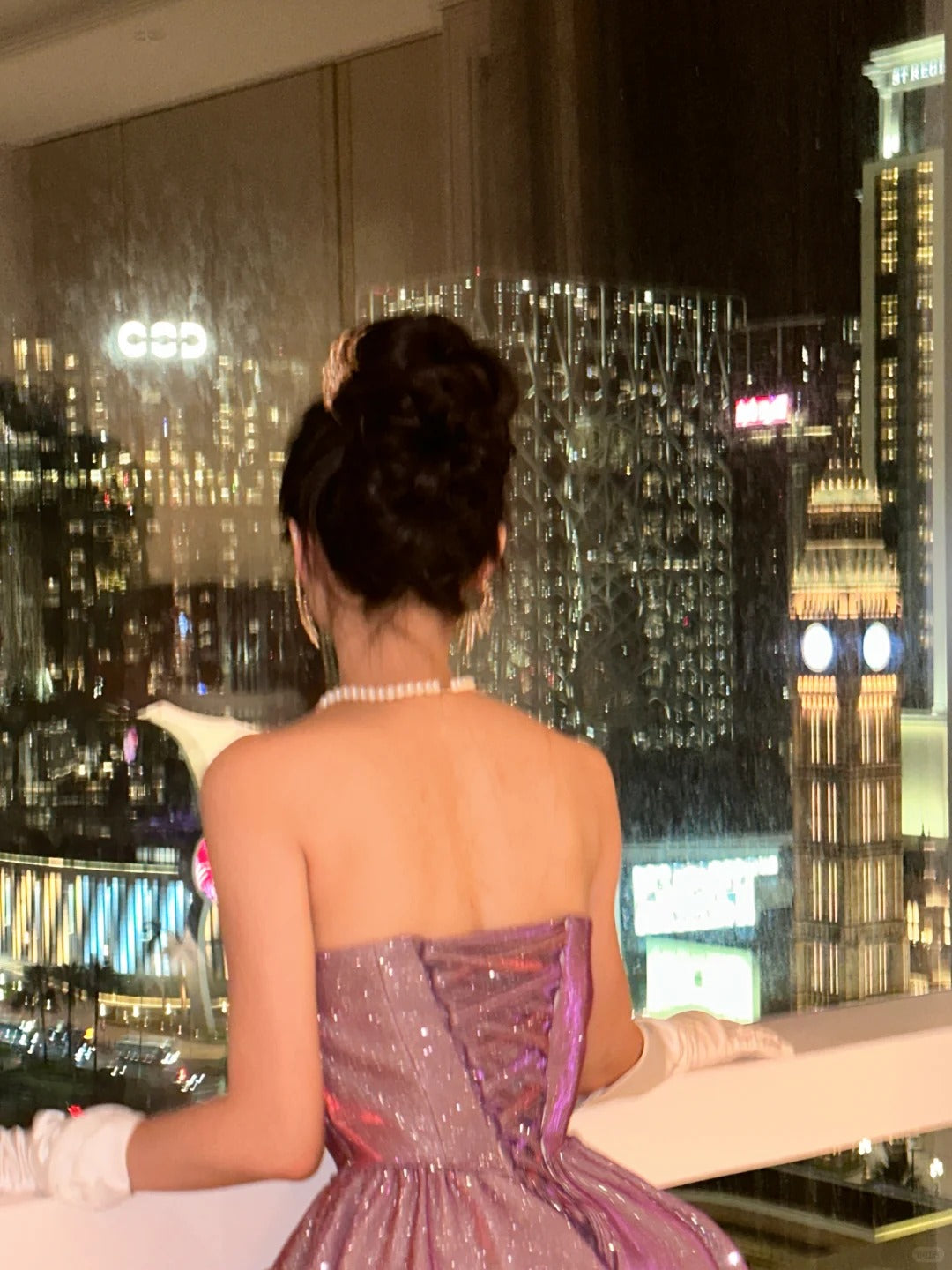 A-Linie Vintage Trägerlos Lila Glänzend Langes Ballkleid Partykleid Einzigartiges Abendkleid cg26066