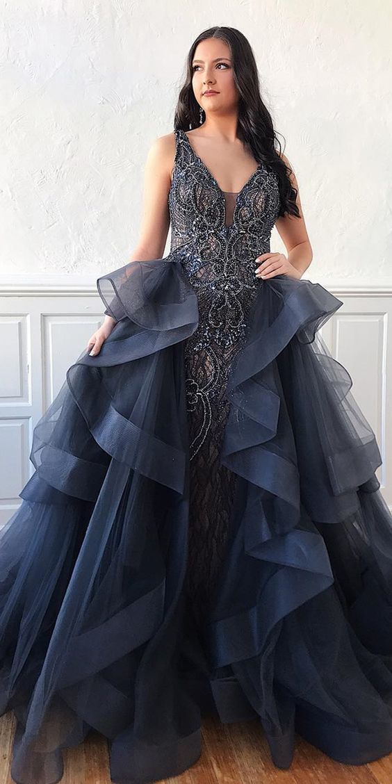 Erstaunliche Spitze Perlen V-Ausschnitt Meerjungfrau Abendkleid Langes Ballkleid cg13242
