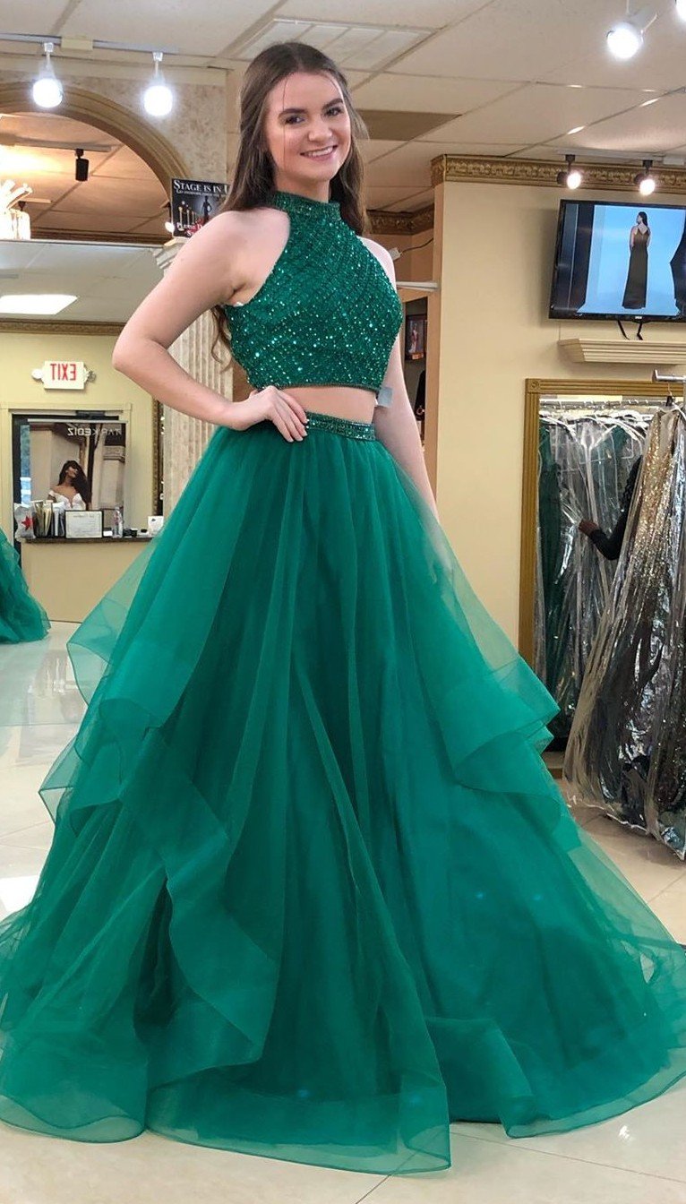 Ballkleid, zweiteilig, grün, mit Stufenrock, cg2237