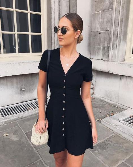 Schwarzes Homecoming-Kleid mit V-Ausschnitt, kurzärmliges Homecoming-Kleid cg22935