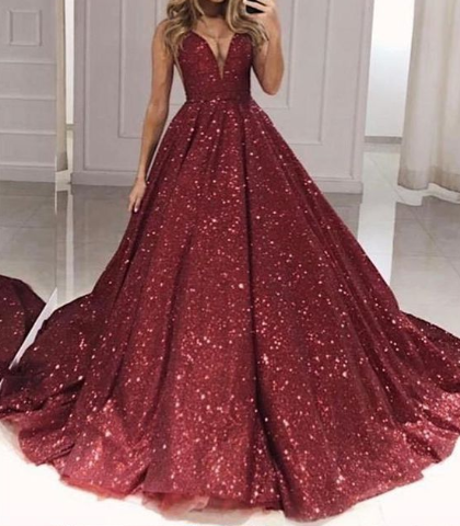 Burgund Pailletten Tiefer V-Ausschnitt Ballkleider Ballkleider cg2108