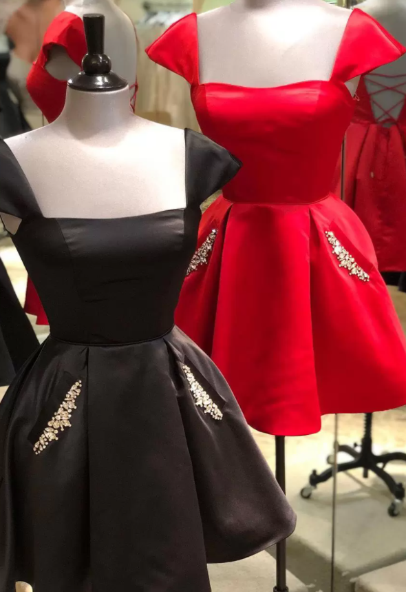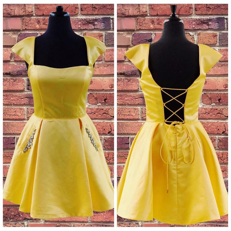 kurzes Homecoming-Kleid aus hellblauem Satin mit Flügelärmeln und perlenbesetztem Mieder cg24733