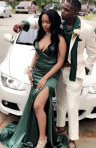 Charmantes Abendkleid im Meerjungfrau-Stil mit tiefem V-Ausschnitt und langem Schlitz im Ballkleid cg4880