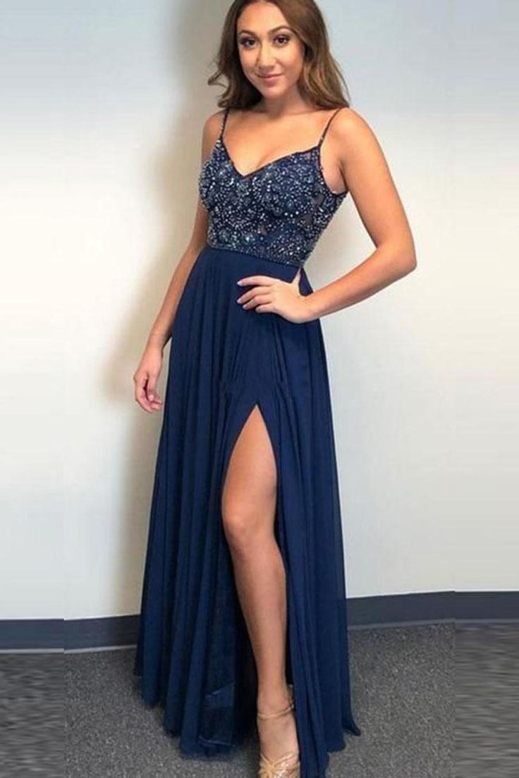 Charmantes Spaghettiträger Abendkleid, Sexy Ballkleid mit Schlitz cg603