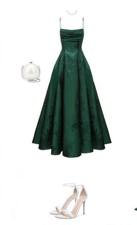 Smaragdgrünes Ballkleid mit Spaghettiträgern, A-Linie, Abendkleid cg24974