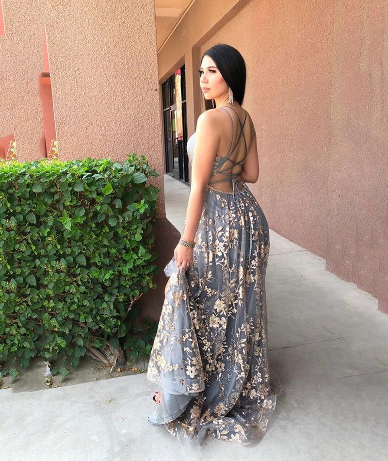 GRAUES V-AUSSCHNITT TÜLL LANGES BALLKLEID ABENDKLEID cg13088