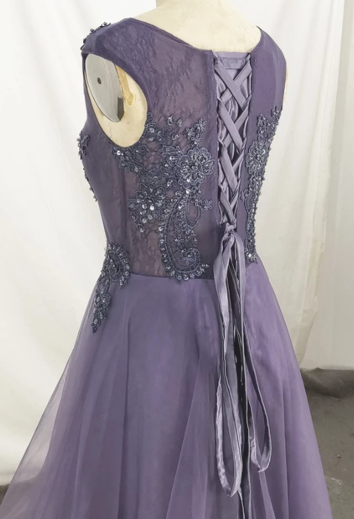 Grau-Lila High Low Partykleid, Süßes handgemachtes Ballkleid cg2634