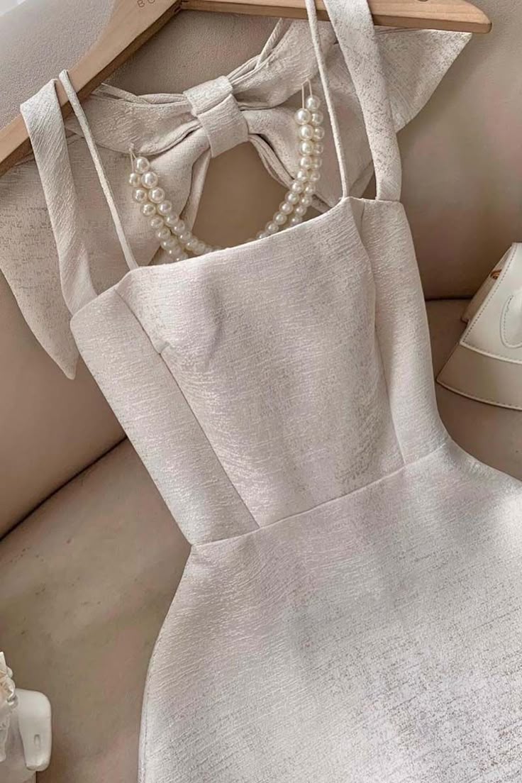 Neckholder-Ärmelloses Satin-A-Linien-Mini-Heimkehrkleid mit Schleife, kurzes Partykleid cg26018