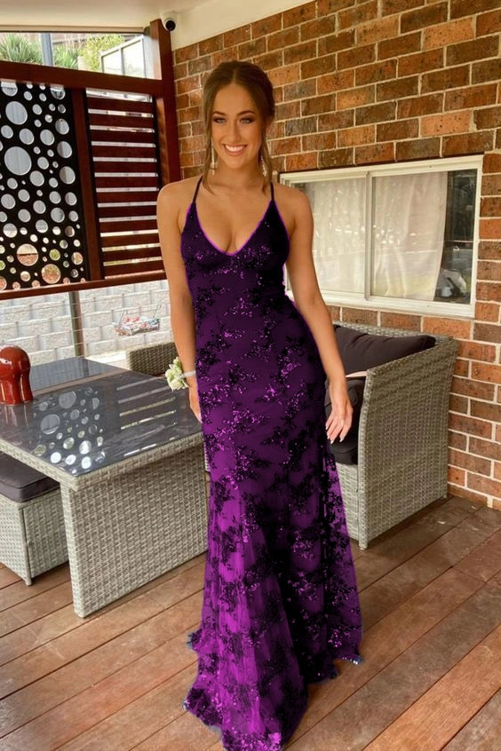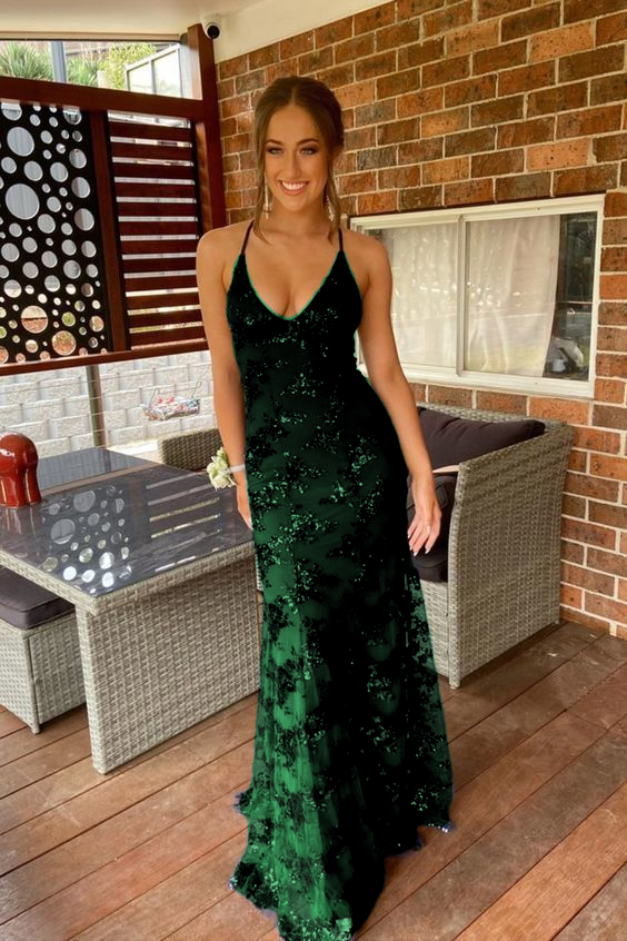 marineblaues, langes Ballkleid im Meerjungfrauen-Stil aus Tüll und Pailletten mit V-Ausschnitt und Schnürung am Rücken, cg10962