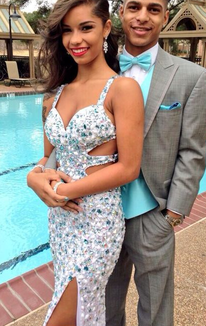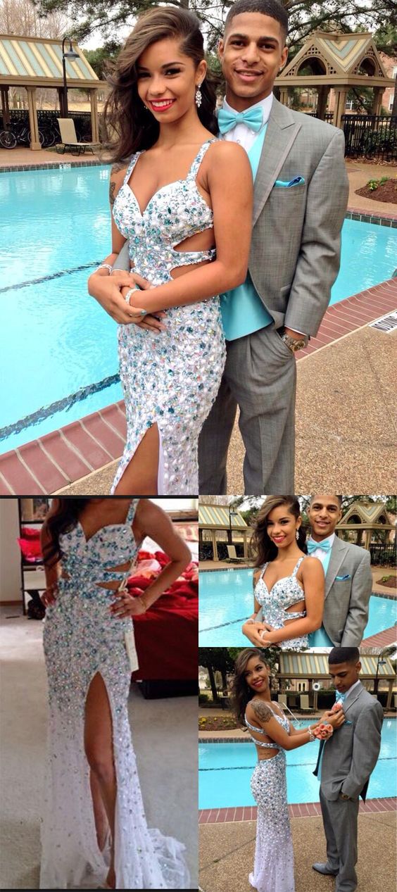 Neue Ankunft Kristall Meerjungfrau Rückenfrei Weiß Front Split Langes Abendkleid cg4524
