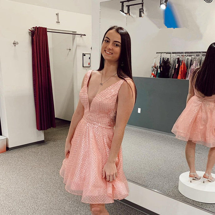 Neueste V-Ausschnitt A-Linie Homecoming Kleider cg22009
