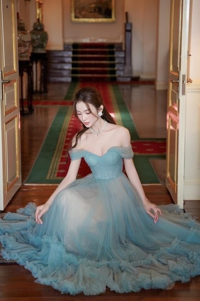 Schulterfreies Tüll-Abendkleid, ärmelloses Ball- und Partykleid cg25583