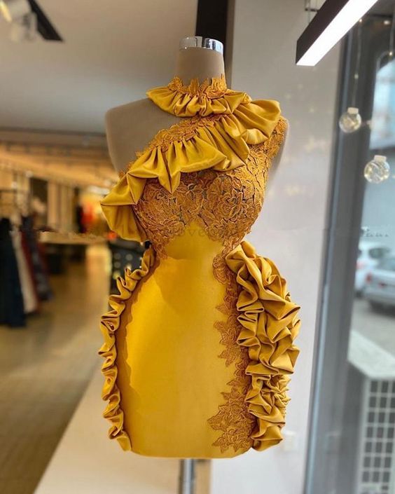 Eine Schulter Rüschen Kurzes Heimkehrkleid Vestidos de Cocktail Echt Bilder Knielangen Afrikanische Mädchen Party Kleider cg23520