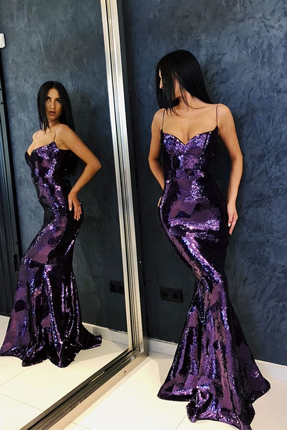 Lila Lange Ballkleider Spaghetti-Trägern Meerjungfrau Abendkleider cg2310