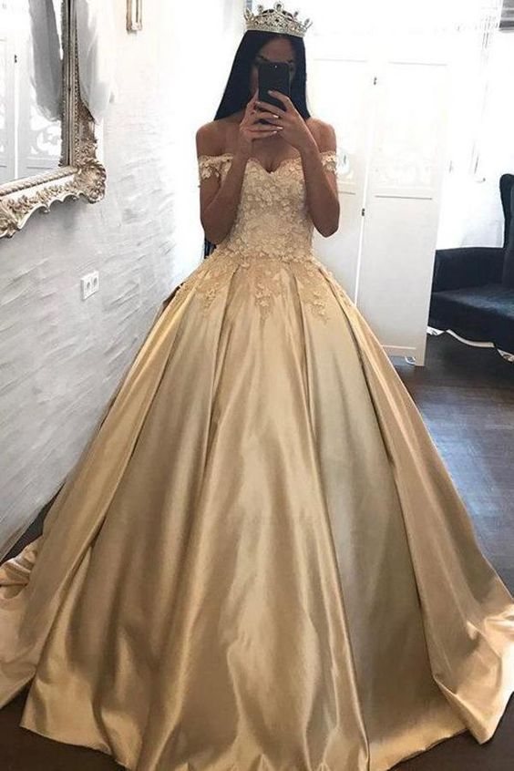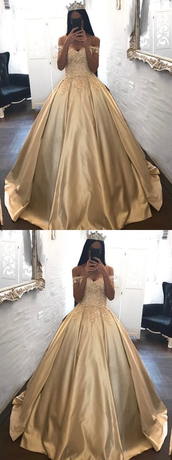 Sexy Ballkleid, langes Satin-Ballkleid, goldenes Ballkleid, schulterfreies Ballkleid cg636