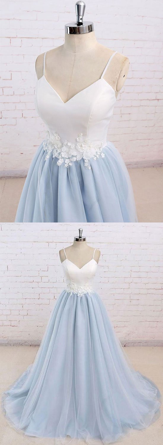 Einfaches, babyblaues langes Ballkleid mit V-Ausschnitt, Abendkleid cg480