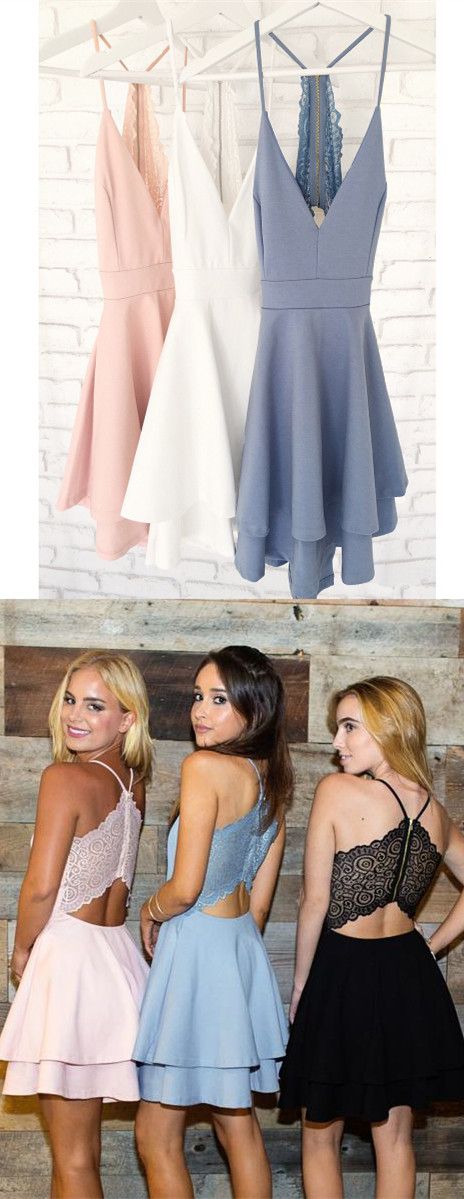 Spaghettiträger V-Ausschnitt Kurzes weißes Homecoming-Kleid cg2381