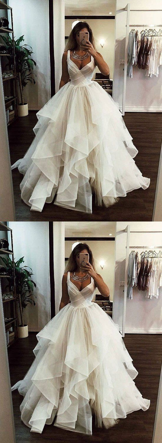Weißes langes Ballkleid aus Tüll mit V-Ausschnitt, weißes Abendkleid cg1491