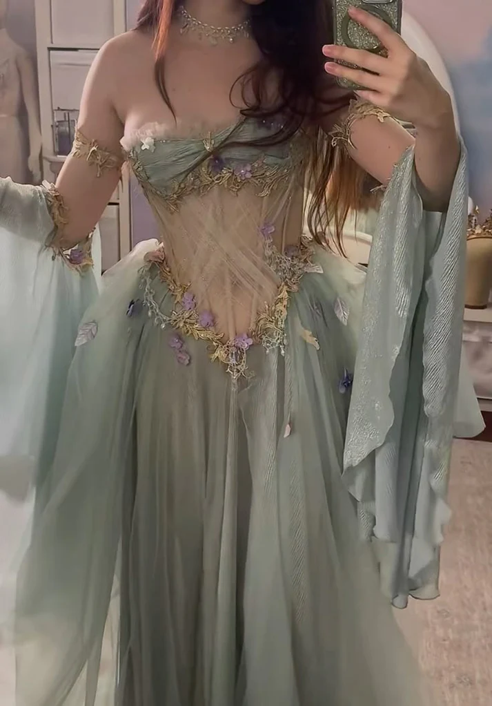 Elegant A Line Off The Shoulder Floor-length Tulle Long Sleeves Evening Dress Prom Dresses cg26217