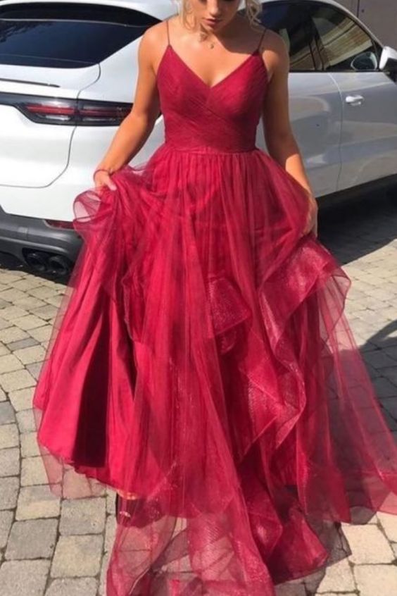 Ruffles Red Long Prom Dress with Open Back cg14424