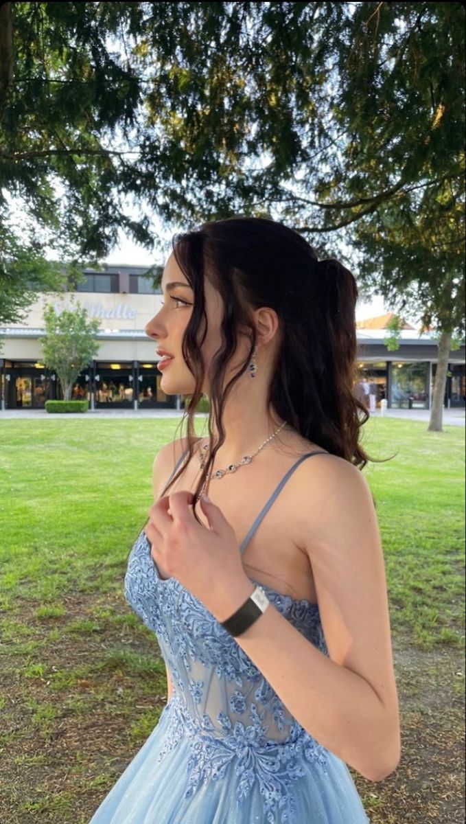 A Line Blue Lace Long Prom Dresses, Long Blue Lace Formal Evening Dresses cg25209