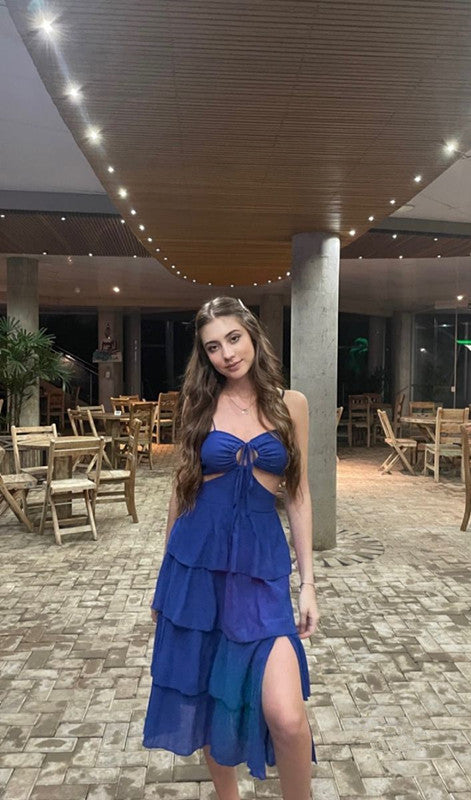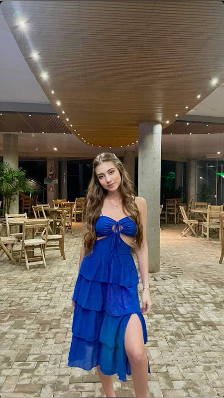Blue Sleeveless Prom Party Dress with Split cg25304